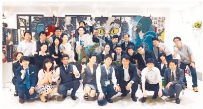 日本乐购仕店内,张琦(前排右四)同中日两国同事合影。 |