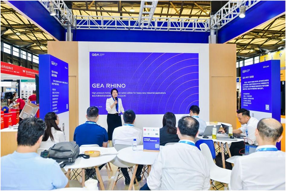 展会同期举办的研讨会上,GEA专家应邀出席,重点介绍了RHINO高压均质机的卓越均质效果及稳定性能。该设备可提供高达2000巴的工作压力,专为处理高耐磨性、高粘度及复杂工业材料而设计,适用于碳材料、纤维素和工业生物细胞破碎等应用场景。