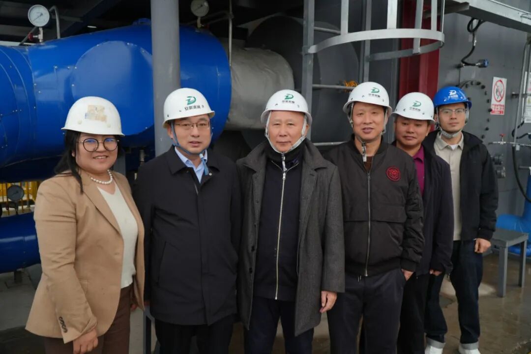 在直流无焰氧化装置视窗前,考察团成员通过视镜亲眼目睹了氧化床内发光发热无焰氧化的运行状态。君发科技总工程师王孝敏向考察团详细介绍了预处理系统、分布器、氧化床等结构,运行参数、启动能耗及超低排放的尾气数据等关键技术细节,为本次考察提供了坚实的技术注脚。
