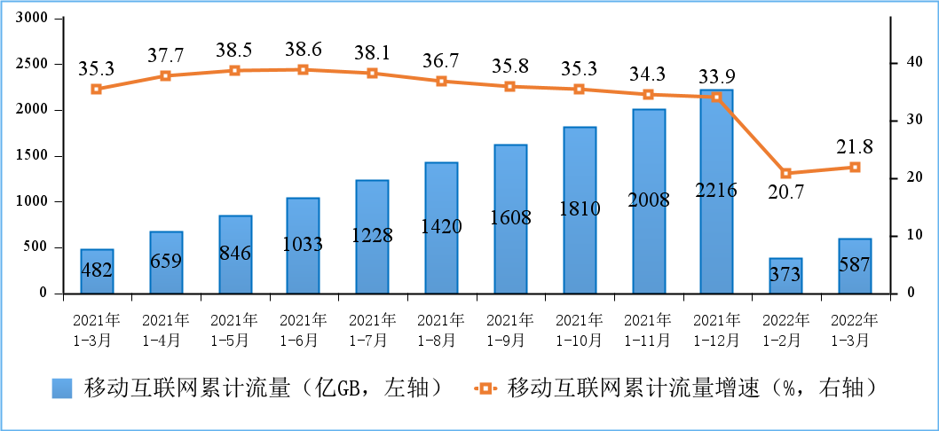 图5 移动互联网累计接入流量及增速情况