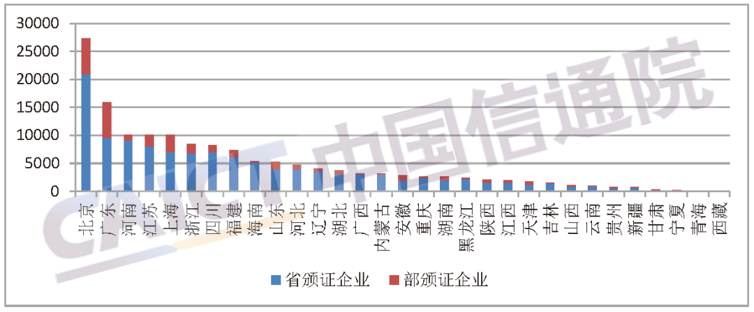 在118918家本地企业中,北京21023家,广东9598家,河南9112,接下来依次是江苏、上海、浙江,上述6地集中了全国51.80%的增值电信企业,西部12省份的增值电信业务经营者占全国的16.69%。