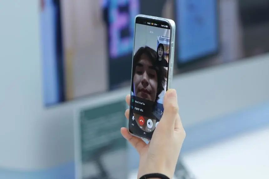 移动5G新通话,一边打电话可以一边翻译,是本届亚运会最热门的沟通“神器”。5G新通话,让传统通话从“听得见”升级到“看得见”,更实现多语种在线实时翻译,让跨语言交流更简单。记者拨通5G新通话后,对面小姐姐讲英语,语音可以翻译成中文在屏幕显示,沟通确实方便了很多。“通过5G新通话,在面对面视频通话中,可以同步传送音乐、视频、图片,还能实现‘屏幕共享’‘多方通话’,有时候会比面对面沟通还方便。”体验的亚运村媒体记者们说。