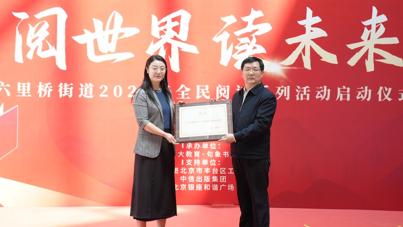 仪式伊始,六里桥街道党工委委员、办事处副主任苟光茂代表六里桥街道发起“阅世界 读未来”全民阅读倡议,鼓励辖区居民以此次活动为契机,以书为媒,以读为径,共同营造“爱读书、读好书、善读书”的浓厚氛围,为推进 “书香丰台”“书香北京”建设贡献力量。