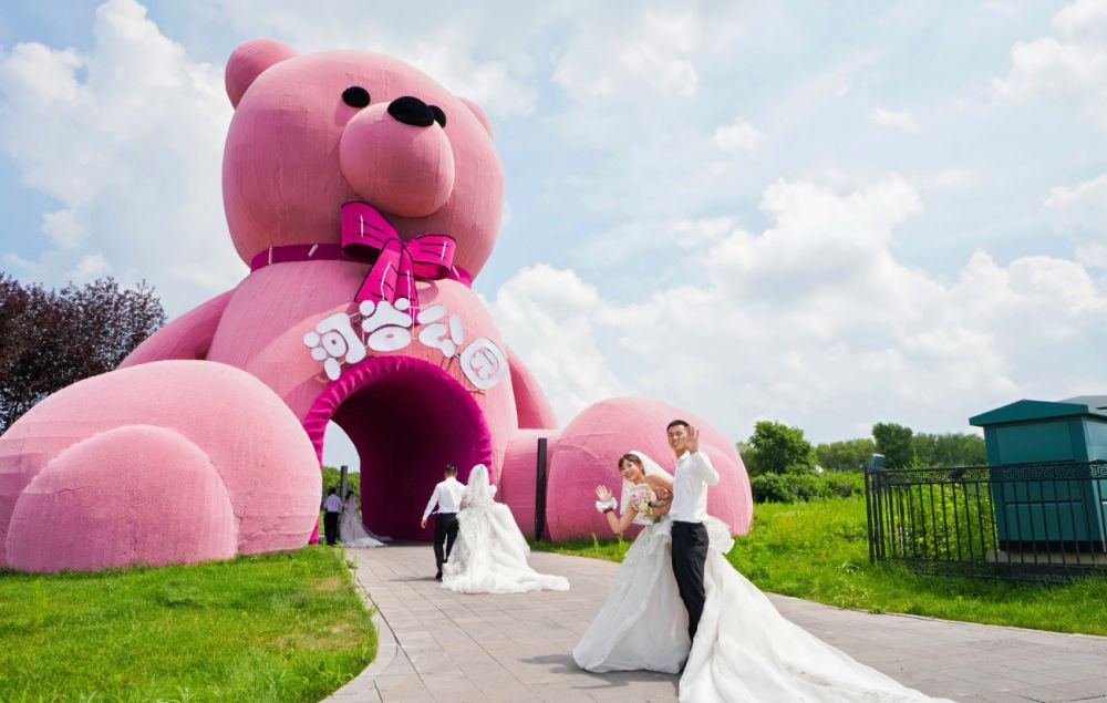 婚典仪式结束后,新人们来到运粮河谷营地公园举行集体婚宴和婚纱摄影留念等活动。运粮河谷营地公园融合自然、水上、露营、休闲、餐饮、艺术等多元主题,是远离城市喧嚣、拥抱自然的理想之地。来自河北省承德市的新人王景博、胡月鑫说:“迷人的松花江畔和运粮河谷营地公园不仅见证了他们的爱情,也成了他们心中永恒的浪漫之地。”