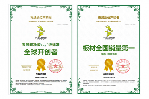从E0级到ENF级再到全球首发的ENF+级,是兔宝宝联合国家级检测机构、专家团队,经过多次实验才最终形成。其可靠性不仅经权威认证,也在市场上赢得了认可,在获得“零醛超净板ENF+级标准全球开创者”认证的同时,兔宝宝还获得了“板材全国销量第一”市场地位声明认证,再次证明其品牌实力与影响力。