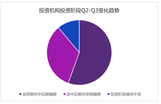 变化2:从投资阶段看,成长期公司“唱主角”,初创期公司“回暖”,中后期公司“转寒”