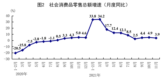 总的来看,11月份国民经济继续保持恢复态势,主要宏观指标处于合理区间。但也要看到,国际环境更趋复杂严峻,国内经济恢复制约仍然较多。下一步,要坚持以习近平新时代中国特色社会主义思想为指导,深入贯彻落实党中央、国务院决策部署,全面贯彻落实党的十九届六中全会和中央经济工作会议精神,坚持稳中求进工作总基调,完整、准确、全面贯彻新发展理念,加快构建新发展格局,全面深化改革开放,坚持创新驱动发展,推动高质量发展,继续做好“六稳”、“六保”工作,做到跨周期和逆周期宏观调控政策有机结合,着力稳定宏观经济大盘,保持经济运行在合理区间,保持社会大局稳定,促进经济社会发展行稳致远。