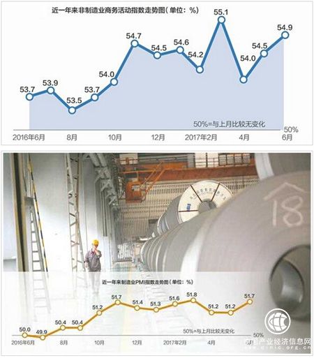 国家统计局数据还显示,2017年上半年非制造业商务活动指数均值为54.6%,高于去年同期1.2个百分点,6月非制造业商务活动指数为54.9%,高于上月0.4个百分点,连续两个月上升,非制造业继续保持稳中有升的扩张态势。