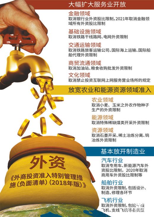 清单更小,开放更大。比如,在金融领域,取消银行业外资股比限制,将证券公司、基金管理公司、期货公司、寿险公司的外资股比放宽至51%,2021年取消金融领域所有外资股比限制。