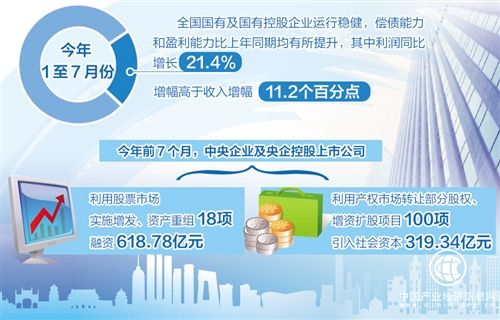 今年1月份至7月份,全国国有及国有控股企业运行稳健,偿债能力和盈利能力比上年同期均有所提升,其中利润同比增长21.4%,增幅高于收入增幅11.2个百分点。8月29日,国务院国资委举行“创新体制机制、增强企业活力”媒体通气会,国资委副主任、党委委员翁杰明在会上表示,今年以来,国资委和中央企业坚持建立中国特色现代国有企业制度这一根本方向,以增强活力和提高效率为中心,大力推动国有企业体制机制创新,在国企改革重点领域和关键环节取得了新进展和成效。
