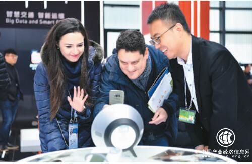 参观者在第四届世界互联网大会·互联网之光博览会上通过家庭智能终端与家庭医生在线交流。(来源:新华社)