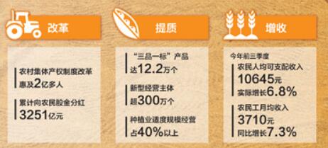 这一年,以农业供给侧结构性改革为主线,由增产导向转变为提质导向,质量兴农、绿色兴农、品牌强农正成为农业发展的主旋律。这一年,深化户籍制度改革,推进异地就医结算,农民工享受到更多公共服务。这一年,整治农村人居环境,大病救治范围扩大,农村民生持续改善……
