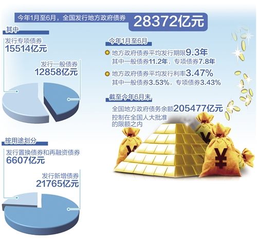 今年上半年,地方政府债券加速发行,累计发行占债务限额的七成,为经济稳定和支撑固定资产投资起到了明显的作用。新增债券资金用于保障性住房建设、交通基础设施建设等6个领域,资金投入占比64.8%,将带动有效投资扩大,并发挥对民间投资的撬动作用——