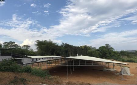 目前已基本完成了2栋鸡舍的主体建设工作,预计今年7月份可投产开始养鸡。