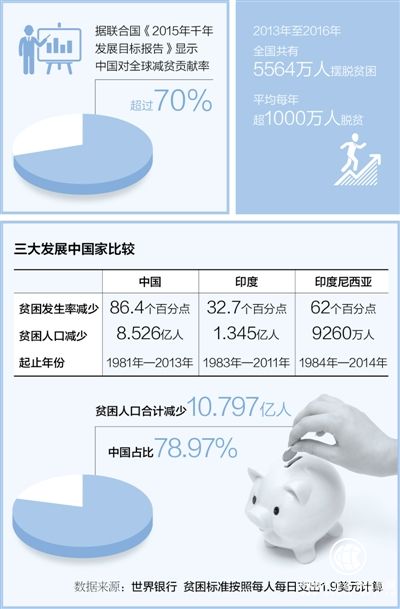 从国际上看,据联合国《2015年千年发展目标报告》显示,中国对全球减贫的贡献率超过70%。中国在全球减贫方面起到了火车头的作用。