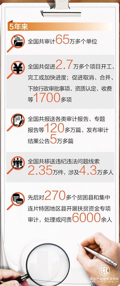 据了解,5年来,全国共审计65万多个单位,促进增收节支和挽回损失2.5万亿元,推动健全完善制度2.38万项,移送违纪违法问题线索2.35万件。具体来说: