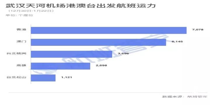 港澳台方面,武汉出港航班量最大的是香港,其次是澳门和台湾,不过这些城市接纳的武汉人都不超过1万人。