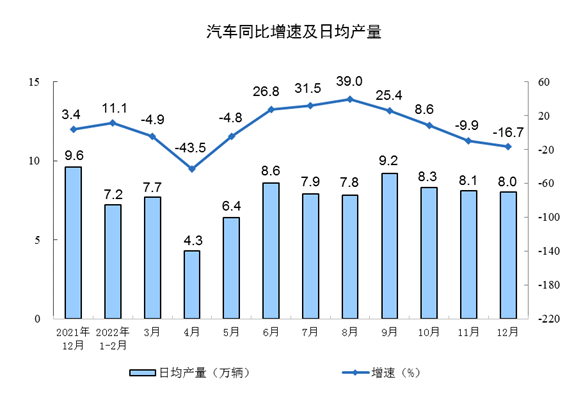 12月份,规模以上工业增加值同比实际增长1.3%(增加值增速均为扣除价格因素的实际增长率)。从环比看,12月份,规模以上工业增加值比上月增长0.06%。2022年,规模以上工业增加值比上年增长3.6%。