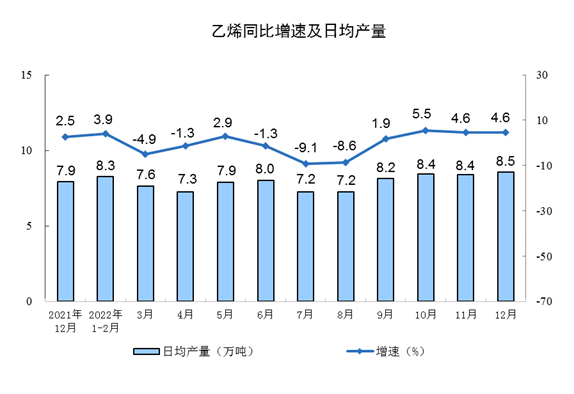 分产品看,12月份,617种产品中有207种产品产量同比增长。钢材11193万吨,同比下降2.6%;水泥16844万吨,下降12.3%;十种有色金属595万吨,增长7.3%;乙烯265万吨,增长4.6%;汽车248.8万辆,下降16.7%,其中新能源汽车81.0万辆,增长55.5%;发电量7579亿千瓦时,增长3.0%;原油加工量5988万吨,增长2.5%。