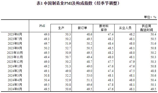 6月份,制造业采购经理指数(PMI)为49.5%,与上月持平,制造业景气度基本稳定。