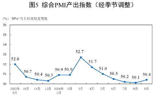 9月份,综合PMI产出指数为50.4%,比上月上升0.3个百分点,表明我国企业生产经营活动总体扩张有所加快。