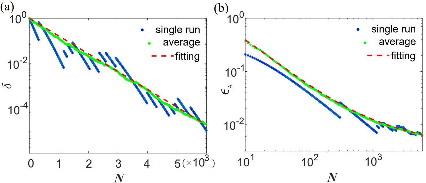 最终实验结果显示,∈的估计值和样本数n呈接近反比关系,也就是1/n的估计精度。这意味着该工作实现了最优的样本复杂度1/∈的量子门检验,更重要的是该方法所需要的样本复杂度并不随量子门规模的增大而增大。