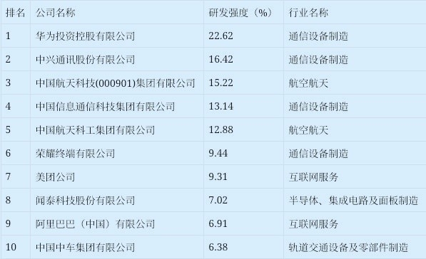 近日,中国企业联合会、中国企业家协会(简称中国企联)发布了“2022中国企业500强”榜单,同时还公布了各个公司的研发强度排名。