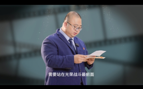 图为:浦江县烟草专卖局青年党员在录制的党课视频中诵读家书
