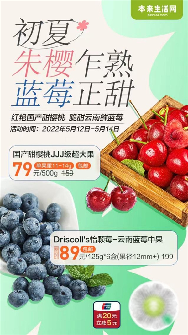 没有比初夏时节更缤纷的水果盛宴了。本来生活网五月鲜果上市,来自辽宁的国产甜樱桃,云南的大蓝莓、沃柑、阳光玫瑰葡萄,海南的贵妃芒、手撕凤梨、妃子笑荔枝、西州蜜瓜、黑金刚莲雾,还有四川的高山五星琵琶,福建的杨梅......大江南北五彩斑斓、处处鲜甜。品尝初夏,尽在本来生活网。