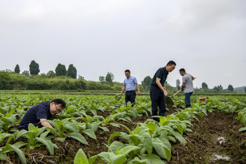 谷雨刚过,桂阳县樟市镇红冲村残疾烟农小蒋的烟田里党旗猎猎,迎风舒展。一支由郴州桂阳县局领导班子组成扶弱帮困党员先锋队,正田间躬身忙碌,有序地清理脚叶杂草、清沟、高培土。“真的没有想到,我一个种烟的,能得到公司这么多领导的关心,移栽是烟站的党员们帮我做的,现在你们又来给我培土,我一定要把烟种好,让日子好起来。”小蒋在人群中,看着身边满身大汗的局长和经理们,激动得不知该如何表达。