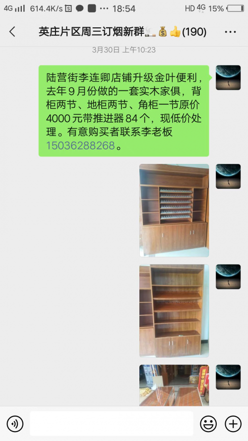 为了让它更好发挥作用,高志岗把李连卿处理实木家具的消息推送在了周一到周五的订烟群里。在拜访张老的时候,也把这则消息说给他听。张老连连责备高志岗说的迟,请高志岗立刻联系李连卿,安排家具订购事项。