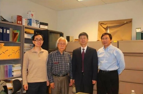 周曦(左一)、导师黄煦涛(左二)与中科院重庆院院长袁家虎(右二)等人合影