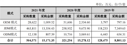 可以看到,云从科技在销售项目中更多以“被集成”为主,也就是充当智慧治理领域集成商的下级供应商,与海康威视、大华股份等安防公司的模式类似。实际上,除了以上IPO文件披露的大项目,云从也频繁以被集成的方式出现在很多小微项目中。据我们统计,2021年12月安阳市公安局683万元的全目标视图解析实战应用平台项目、2021年10月上海铁路公安局77万元人脸跨网比对平台项目、2021年9月准格尔旗公安局1706万元的计算机设备及软件项目……这些项目都采用了云从的相关设备,覆盖视频解析服务器、人脸识别算法模块、抓拍库服务器等众多类别产品。总的来看,这些智慧治理项目以安防需求为主。再来看看生产模式,云从科技主要采取JDM(联合设计制造商)模式。JDM模式即公司提出产品需求和规划,基于外协厂商基础硬件产品,公司主导产品AI算法、应用开发等智能化开发部分,以及部分产品的ID设计等核心环节,外协厂商根据公司的需求和订单进行生产。除此之外,OEM(原始设备制造商)模式和ODM(原始设计制造商)模式也是云从科技重要的生产模式。OEM模式下公司自主研发和设计相关设备,由外协厂商代工生产;ODM模式由外协厂商根据公司订单进行贴牌生产。