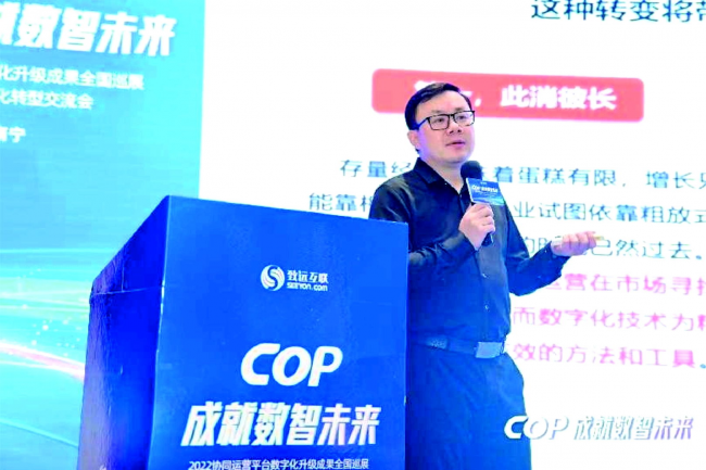 (致远互联营销及售前BG、A9业务总监 吴阳在大会上演讲。)