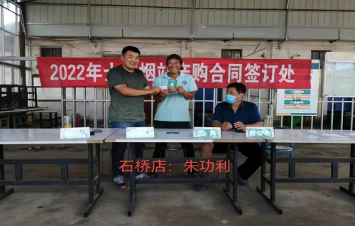 “孙亚召,孙亚召来了没有?”随着叫号,冢头镇种烟大户孙亚召来到桌前坐下,经过讲解合同约定内容、签字、摁手印、盖章等一系列流程,冢头烟站站长程亚会代表郏县烟草分公司与孙亚召签订了20亩的烟叶产购合同。