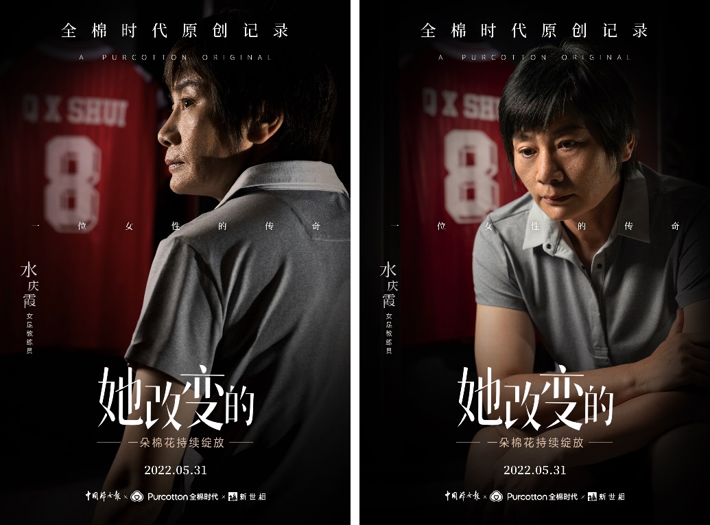 5月31日,全棉时代联合中国妇女报、新世相共同推出原创记录系列「她改变的」,聚焦女足教练水庆霞,讲述她带来改变的故事。片头用一朵棉花的绽放,寓意温柔而坚韧的女性力量。该片一改常规纪录片的拍摄方式,引入业内成熟纪录片的操作手法,给观众带来沉浸式的大片体验。同时,全棉时代特邀“中国最好的肖像摄影师”肖全,为水庆霞拍摄了充满态度和故事感的人物海报。