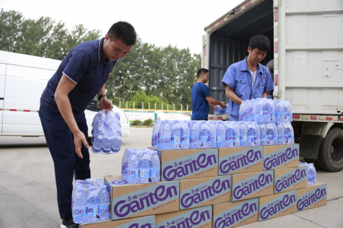 图为:汛情期间到配送一线帮扶送货