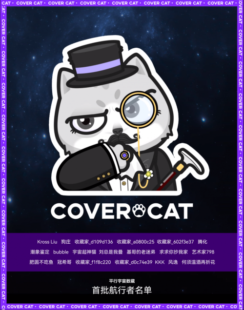 并且,Cover Cat(捂嘴猫)将会于“平行宇宙”数藏电商平台准时上线。Cover Cat(捂嘴猫)数字藏品分为Cover Cat(捂嘴猫)主形象及特殊藏品两项内容,特殊藏品会不断由项目方发送,用于与主形象结合,升级其精细度、3d、动态化的藏品展示状态。