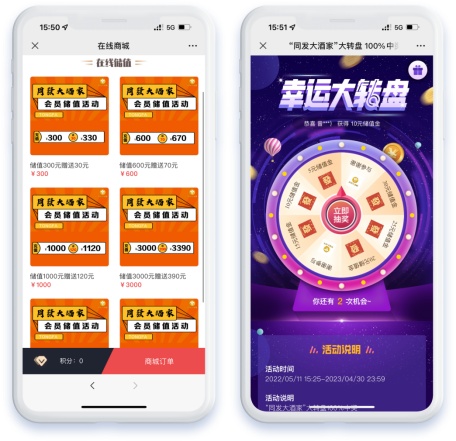 今年五一和母亲节期间,同发大酒家通过微盟智慧餐饮“三店一体,开源节流”解决方案从零开始,上线会员储值活动,构建有针对性的储值方案、专业培训和营销话术等体系化运营,在门店铺设活动物料、配备员工储值码,以密集的触点提升会员入会、储值的便捷度,并在会员发展初期,通过企微有效承接新会员,为后期维护、营销转化打下了良好基础。得益于成熟打法的助攻,同发大酒家9天累计会员储值金额超72万元,实现了在疫情中的逆势增长,创造营收新突破。