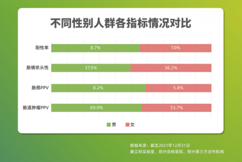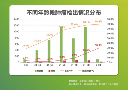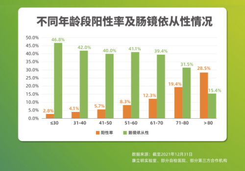 截至2021年12月,作为持续披露真实世界应用数据的肠癌粪便基因检测产品,长安心®共完成33万例前瞻性筛查,其中175528例筛查数据可追溯,12114例受检者长安心®检测结果阳性(阳性率6.9%),其中4970例长安心®检测结果阳性的受检者进行了肠镜复查(肠镜依从性41.0%),一共发现3408例需要治疗的受检者,其中755例肠癌,1444例腺瘤,1209例息肉。长安心®对肠道肿瘤的阳性预测值(PPV)为68.6%(其中肠癌的阳性预测值为15.2%),来自国家科技部项目的数据显示,长安心®的阴性预测值更是高达99.9%。