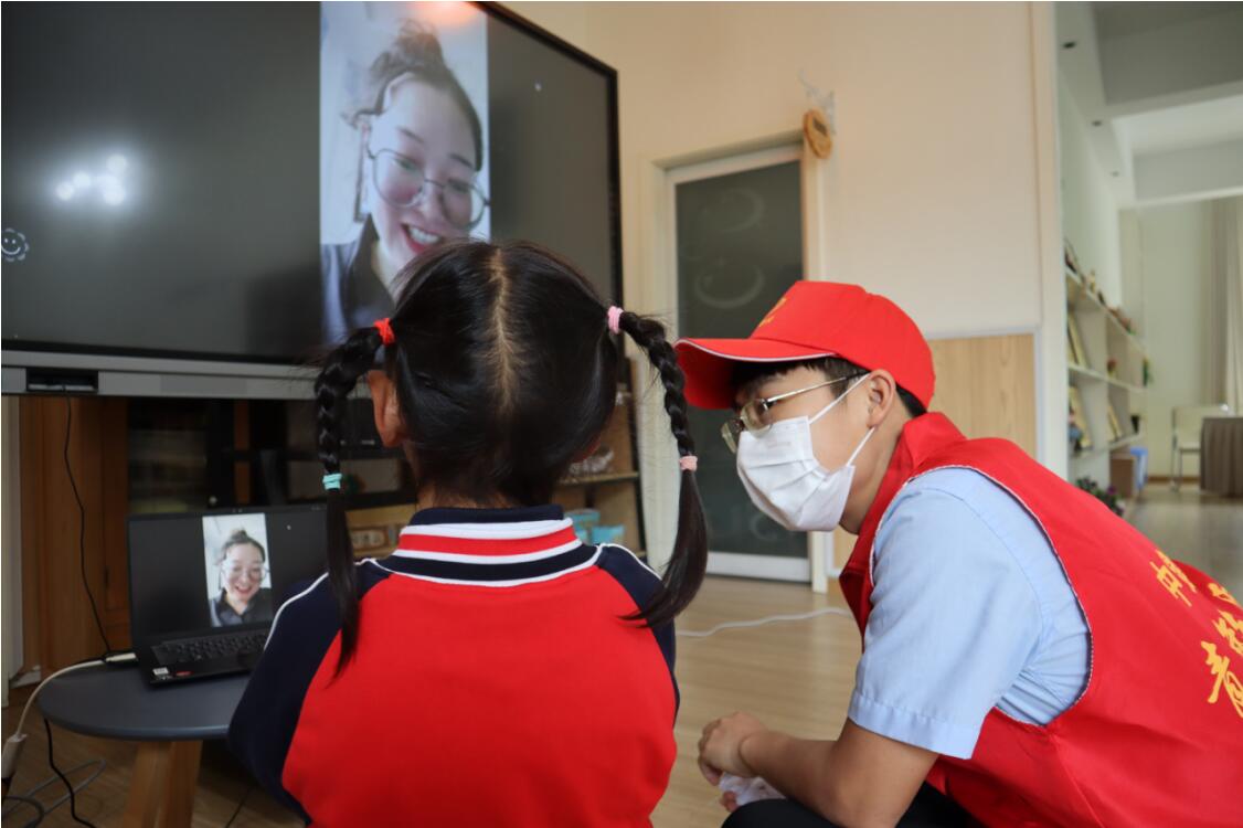 活动现场,来自“蒲公英”志愿服务队的队员们化身“爱心父母”,与幼儿园孩子一起阅读绘本、画画;在幼儿园老师的引导下,孩子们还争相与自己的父母进行视频连线。连线过程中,汶川县映秀镇副镇长王亚与孩子父母们进行了亲切交流,嘱咐他们在外工作时要注意安全,也要经常与自己孩子沟通,注重家庭教育。当父母们透过视频连线看到自己孩子时,眼眶瞬间湿润了。