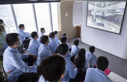 2022年10月16日上午10时整,第二十次全国代表大会胜利召开。在中国(上海)自由贸易试验区临港新片区,来自中建八局上海公司基础设施分公司的青年职工汇聚一堂,集体观看开幕式。