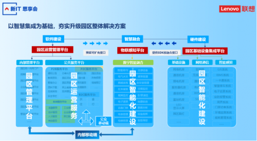 据介绍,面对智慧园区发展难题,联想智慧园区解决方案依托“端-边-云-网-智”新IT技术架构和“擎天”智能化引擎,借助5G、人工智能、云计算、大数据、物联网、数字孪生等技术,形成了基础设施、IT硬件、软件、服务相结合的新型智能集成业务模式,正助力赋能国内各类型园区升级和转型。
