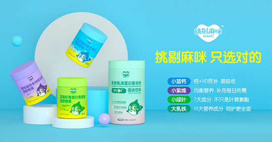 目前,挑剔麻咪旗下共有四款产品,分别是:以宝宝成长期间易缺乏锌、铁、维生素为痛点的挑剔麻咪酵母富锌多种维生素凝胶糖果;以缺钙、钙吸收不达标、成长发育受阻为痛点的挑剔麻咪海藻高钙维生素D凝胶糖果;以缺乏乳铁蛋白等免疫因子为痛点的挑剔麻咪乳铁乳清蛋白复合粉固体饮料;以用眼过度、保护眼部发育为痛点的挑剔麻咪蓝莓虾青素叶黄素酯凝胶糖果。四款产品围绕宝妈对于宝宝成长期的常见诉求,以帮助宝宝均衡补充营养、维持日常所需为出发点,形成了互补闭合的产品矩阵。