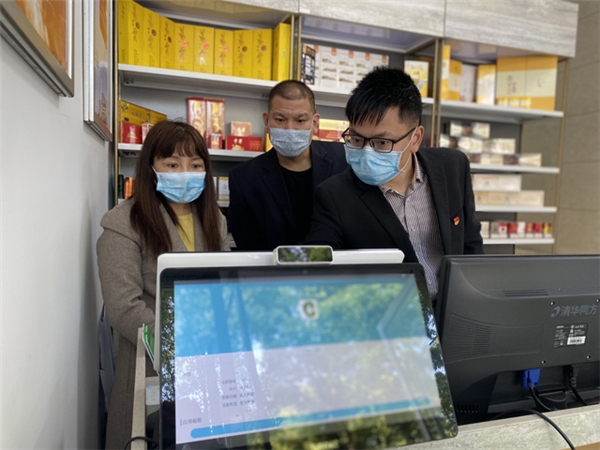 (图为:客户经理为零售户开展经营指导服务。陈锡娇 摄)