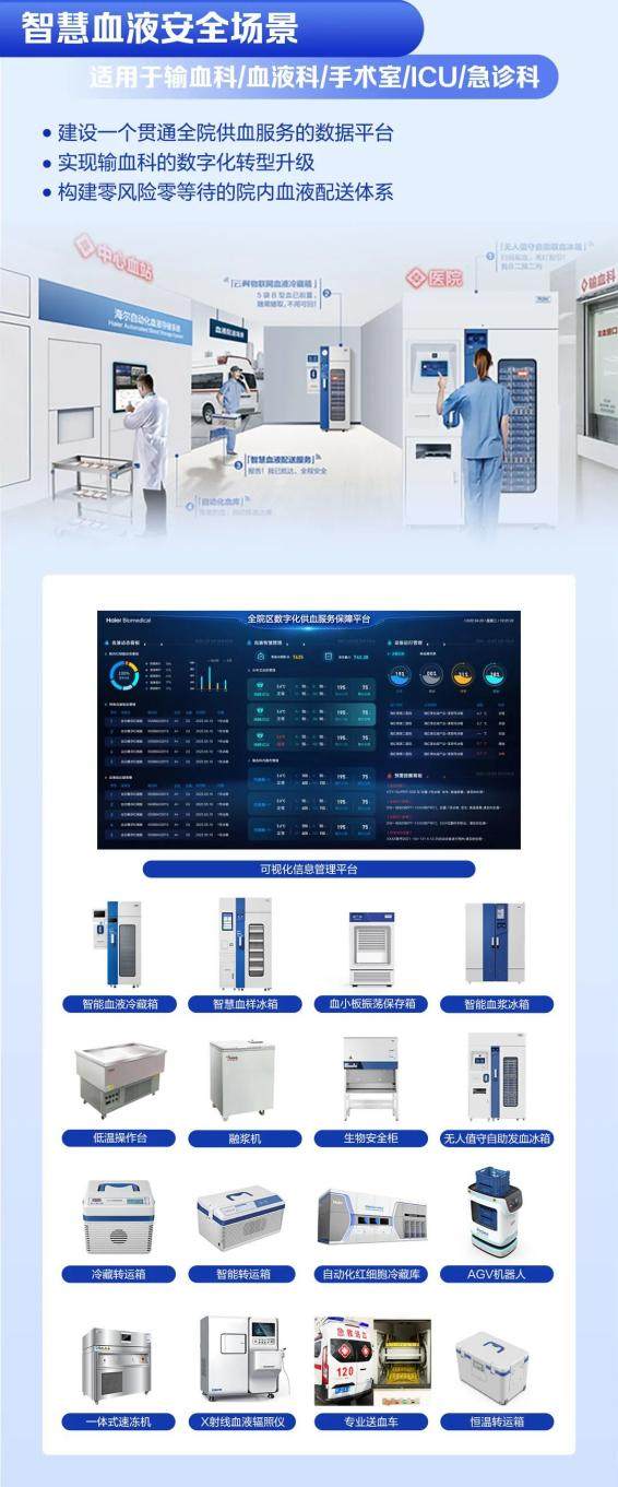 针对全院用血,智慧血液安全场景方案依托血液冷藏箱、无人值守自助发血冰箱等高端设备布局,让急救零等待、血液零浪费,提升临床救治水平。