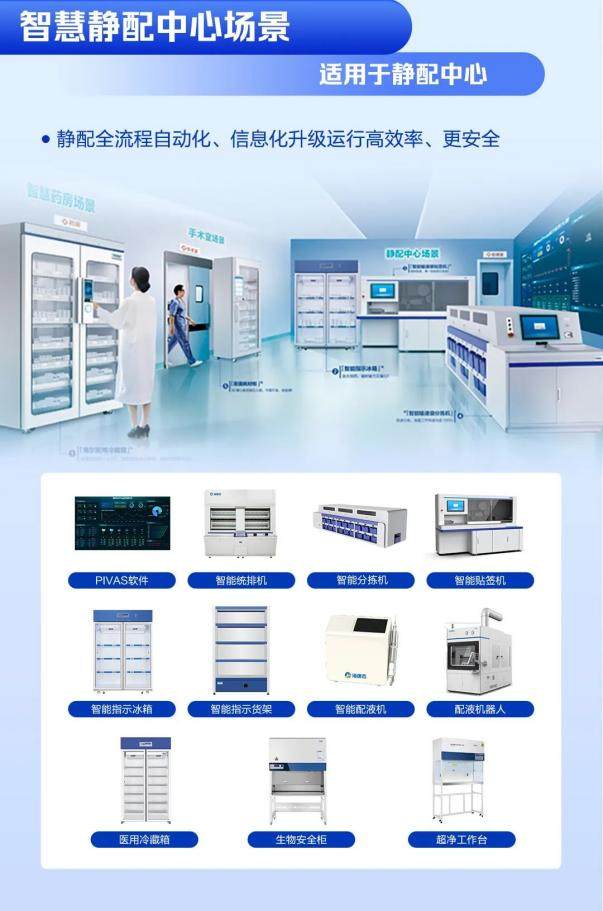 在静脉药物配置领域,智慧静配中心方案实现了智能药品盘点机、智能剥盖机、冷藏箱等全方位布局,让药品试剂零损耗、零差错,省时一半,全程追溯。