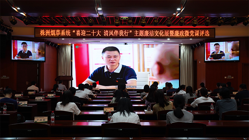 此次廉洁文化展示活动正是近年来株洲烟草加强新时代廉洁文化建设的一个缩影。在廉洁文化建设展示交流环节,五个县级局围绕聚焦“四个清廉要素”、打造“六个清廉单元”、着力“八大清廉行动”等三个方面,以图文并茂的形式展示本单位在廉洁教育、监督检查、制度建设等方面进行的实践和取得的成果。在廉政微党课评选环节,五个县级局采用短视频的方式,从弘扬清廉模范、解读规章制度、维护纪律规定等方面,以生动鲜活的故事为载体,以小见大开展纪律宣讲。活动中还集中组织观看株洲烟草自编自导自演的廉政教育片《廉政教育在身边》《廉洁从业系列宣传片》,并现场为优秀廉政微党课进行颁奖。