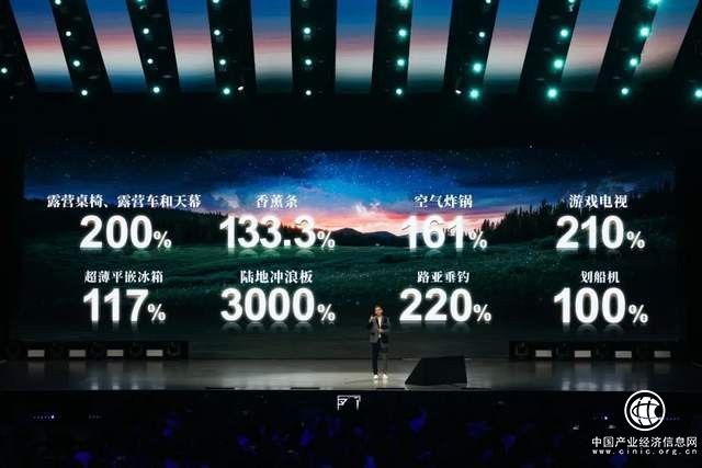我这里有一些数据,可能也让大家挺吃惊的。在一片萧条的2022年,中国市场的露营桌椅、露营车和天幕的销售增长了200%,香薰条销售增加了133.3%,空气炸锅增长了161%,游戏电视增长了210%,超薄平嵌冰箱增长了117%,陆地冲浪板3000%,路亚垂钓220%,划船机100%。