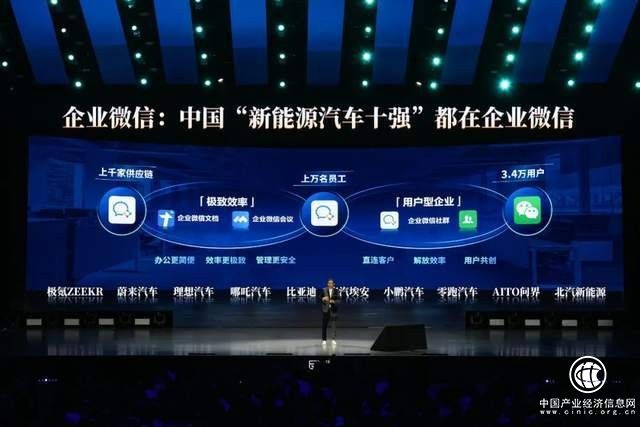 我们在调研过程中发现,中国的新能源汽车前十强企业都在使用企业微信,通过企业微信的文档和会议提高效率。你知道这些公司在这个平台上每天开多少次在线会议?光极氪一家,每天有两千次在线会议,至少形成两千个文档,一年形成六七十万个文档。不光内部效率,还打通了供应链,甚至取消经销商,直接服务每一位车主。如果没有企业微信这样的互联网工具,你无法想象如何进行如此大规模的协同和制造。